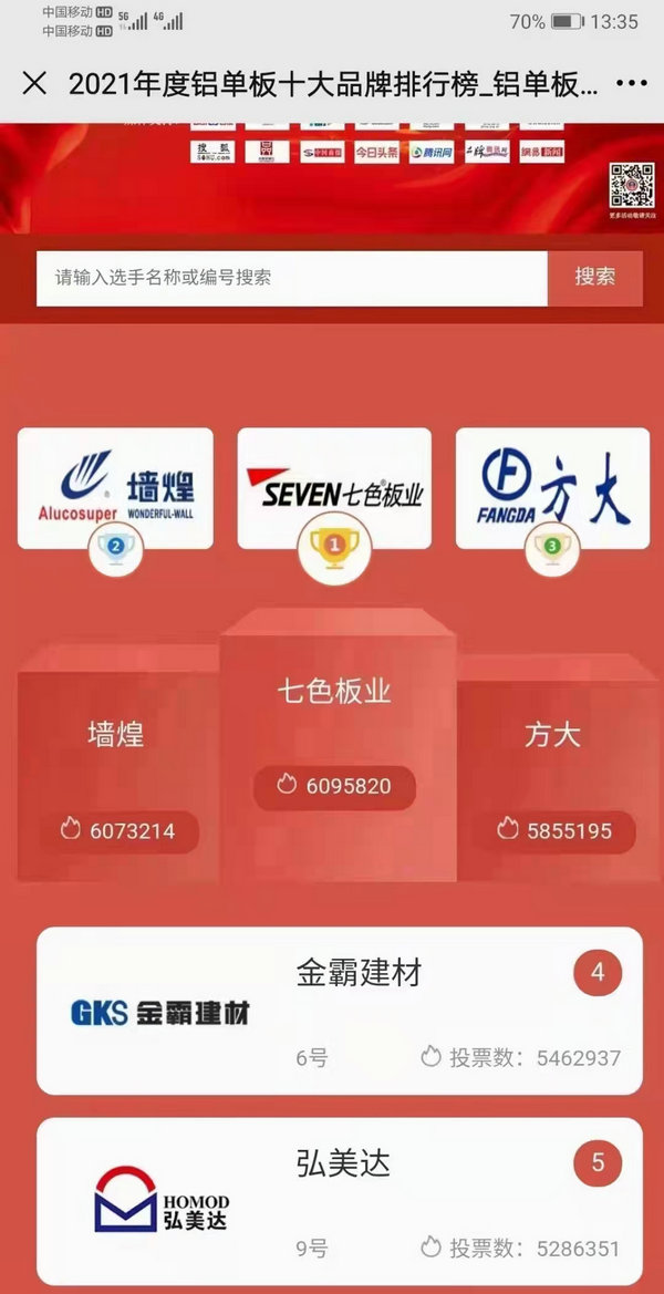 5月11日:【弘美達(dá)】再次入圍2021年度“鋁單板”十大品牌,很榮幸再獲佳績,感謝為弘美達(dá)付出的每一位同仕。