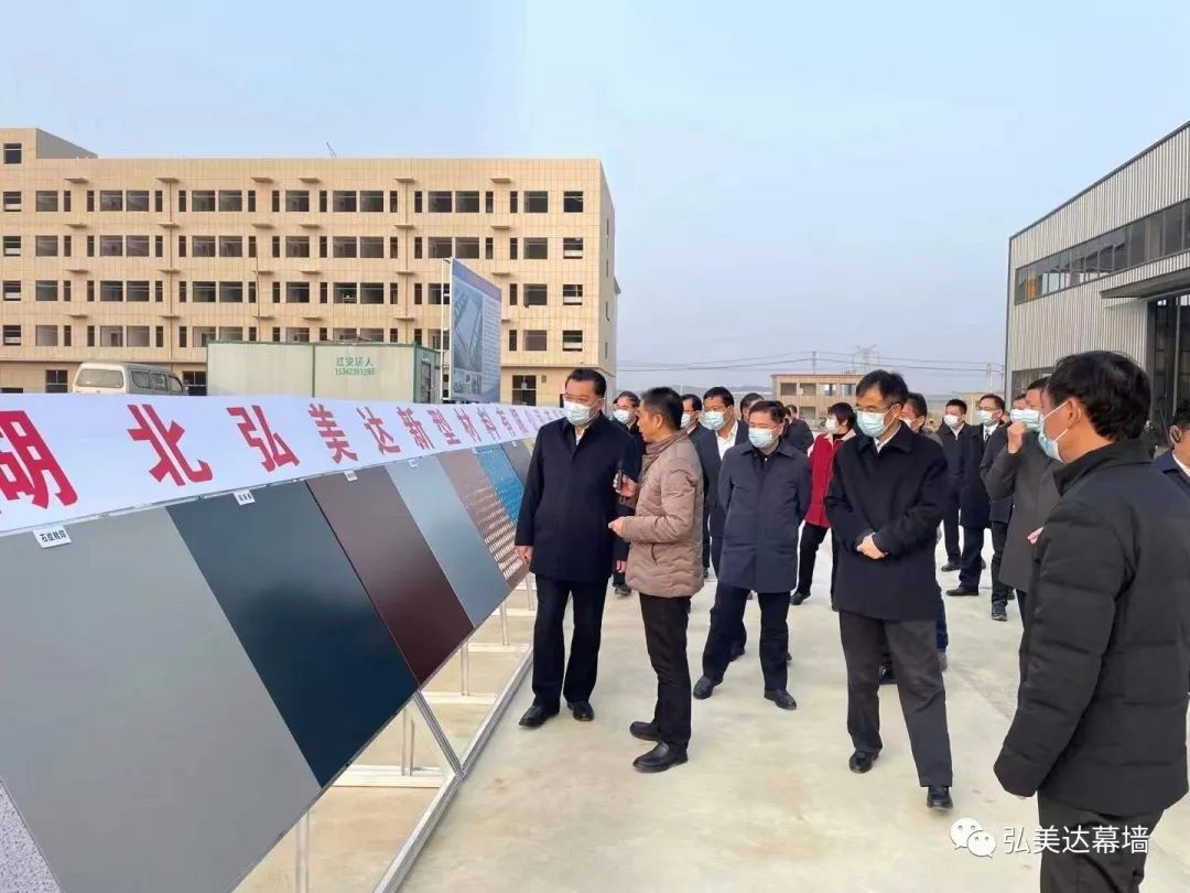 當(dāng)日下午4:00,湖北省黃岡市市委書記張家勝、市長李軍杰帶領(lǐng)各(市)縣領(lǐng)導(dǎo)到達(dá)弘美達(dá)新生產(chǎn)基地現(xiàn)場。書記和市長剛下車便停駐在項(xiàng)目介紹公示欄前認(rèn)真觀看了項(xiàng)目介紹。